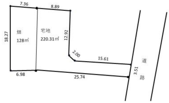 宅地220.31㎡の本物件と西側の畑(128㎡)も一緒に購入